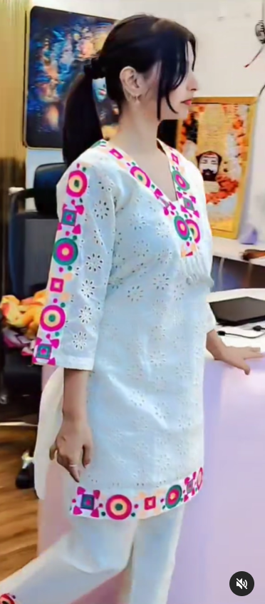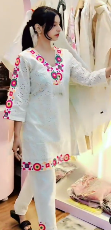 Elegant and ethnic, this premium cotton co-ord set is adorned with intricate embroidery and delicate glass work, making it a timeless addition to your wardrobe.